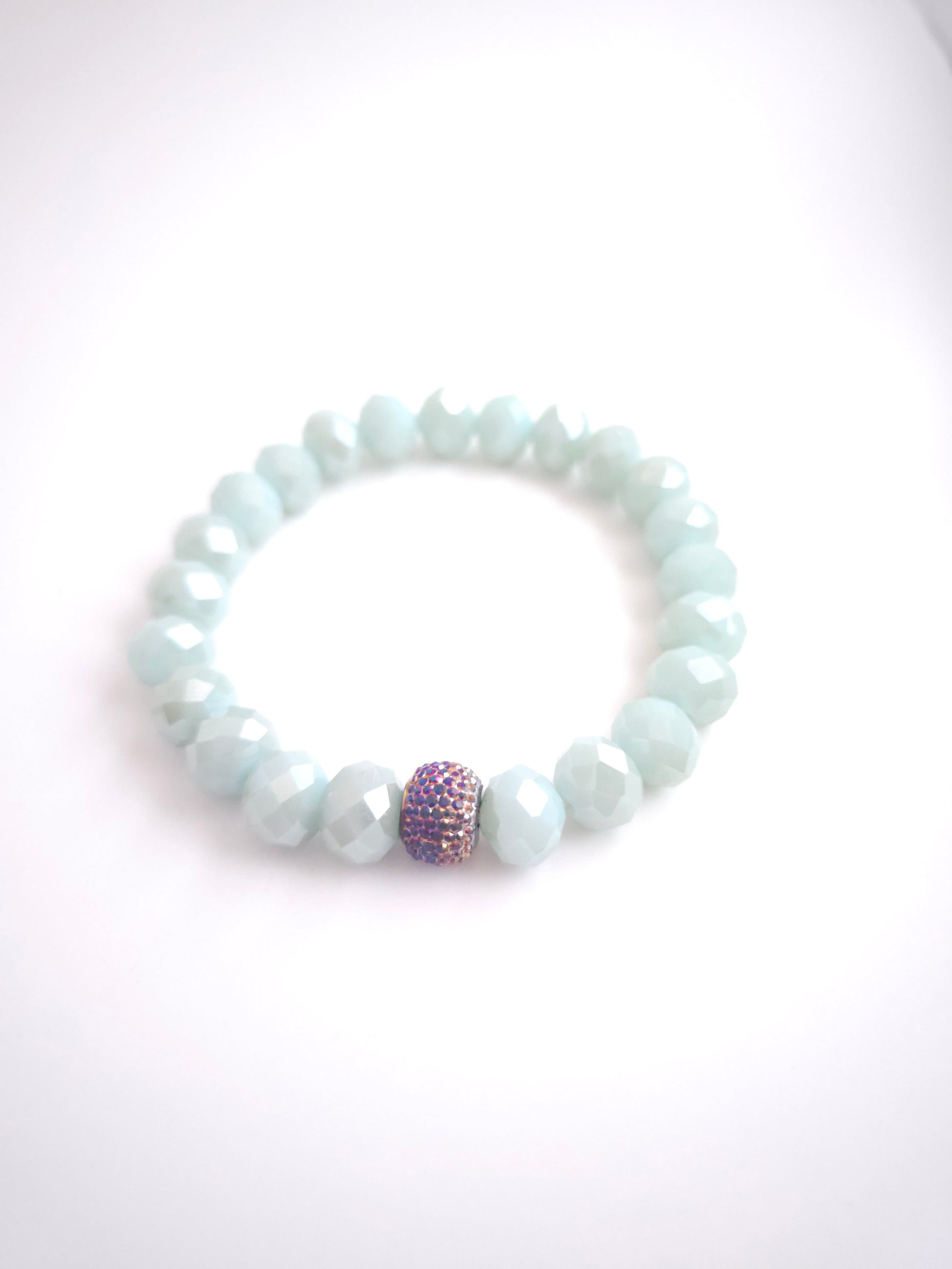 Elevate your everyday style with our Sea Blue Green Diamond Cut Amazonite Bracelet, featuring genuine 10mm diamond-cut Amazonite beads that beautifully reveal nature's calming sea blue-green shades. Adding a touch of earthy elegance, a single purple rhinestone bead complements the Amazonite gems. With its easy-to-wear stretch cord design, this bracelet comfortably fits wrists of all sizes, making it a practical accessory for daily wear. Embrace the grounding energy of Amazonite while infusing a hint of creative flair with the rhinestone bead.